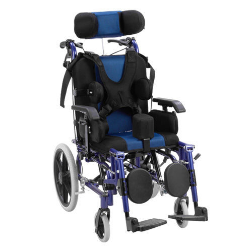 •鋁製椅子框架。斜倚高靠背,可調節頭枕,可拆卸扶手,升降腳踏,角度可調座椅,實心前輪,PU後輪,配備安全帶, 椅背配有一口袋。*座闊有3個尺寸可選.
